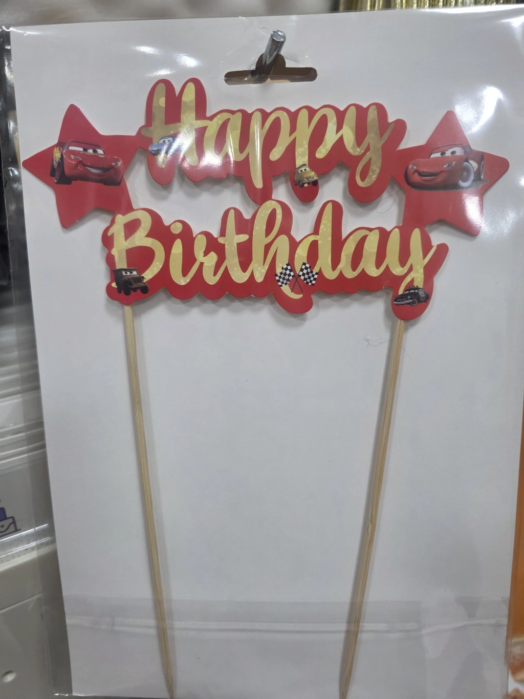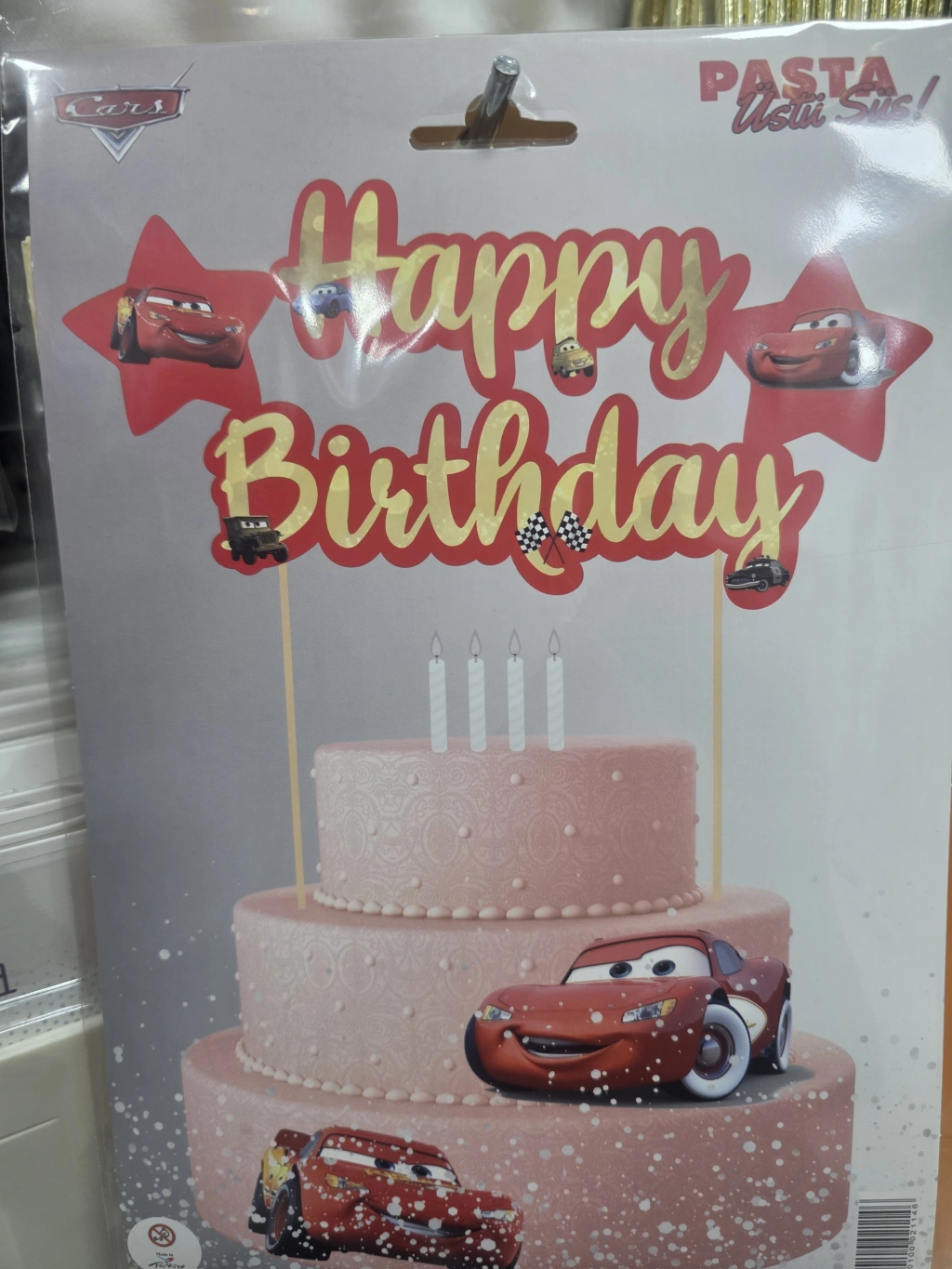 Arabalı Happy Birthday Pasta Üstü Çubuklu Süs